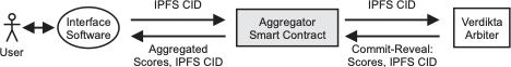 Verdikta employs a two-phase commit-reveal scheme for oracle responses, an established technique to prevent cheating by withholding or copying answers. The commit-reveal approach ensures that each arbiter must decide on an answer independently, without knowing the answers of others, before any answer is revealed publicly. This is crucial to avoid a lazy or malicious arbiter simply imitating others. The exchange of information in the Verdikta process is illustrated in the figure below:
